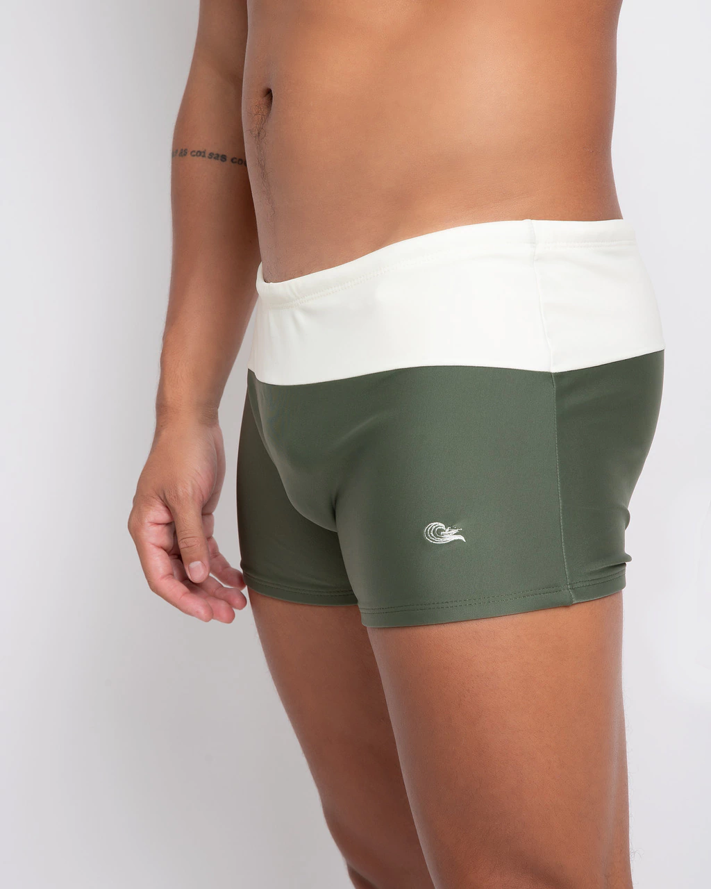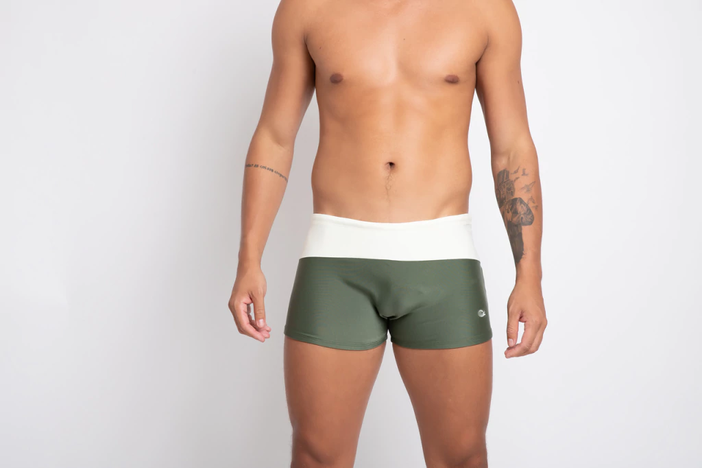 Sunga Box Masculina Moda Praia - Conforto e Estilo em Verde Musgo Off White!